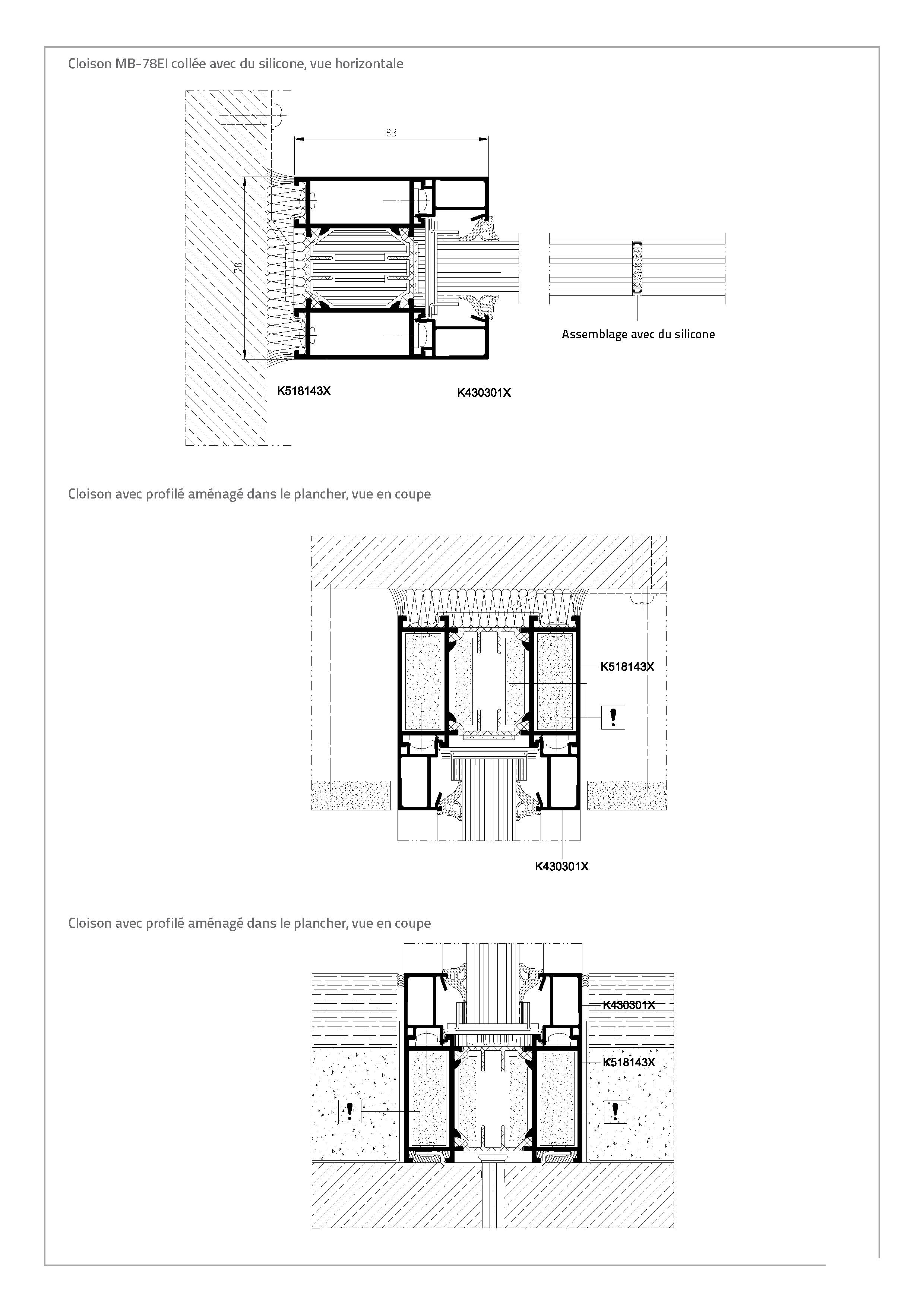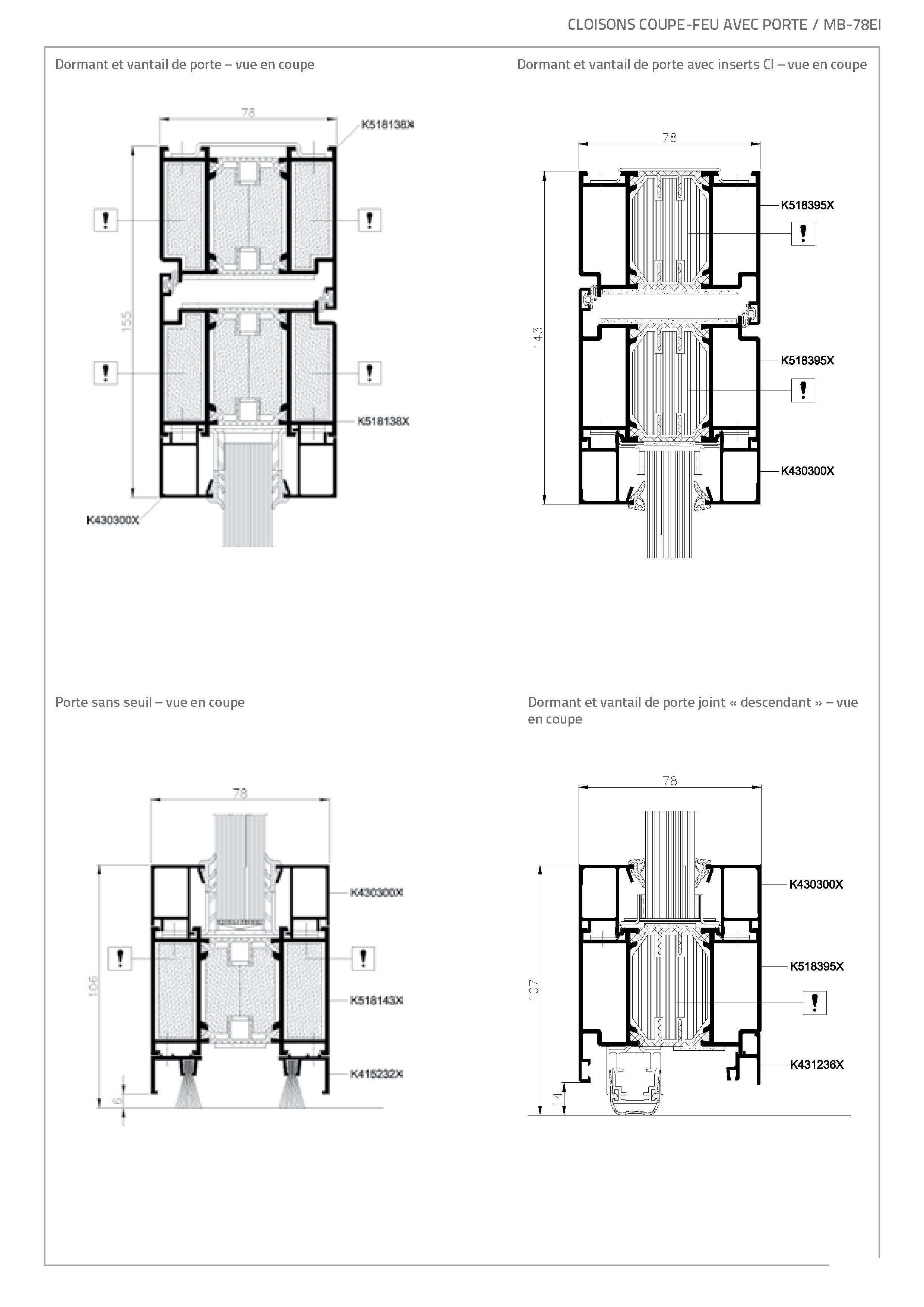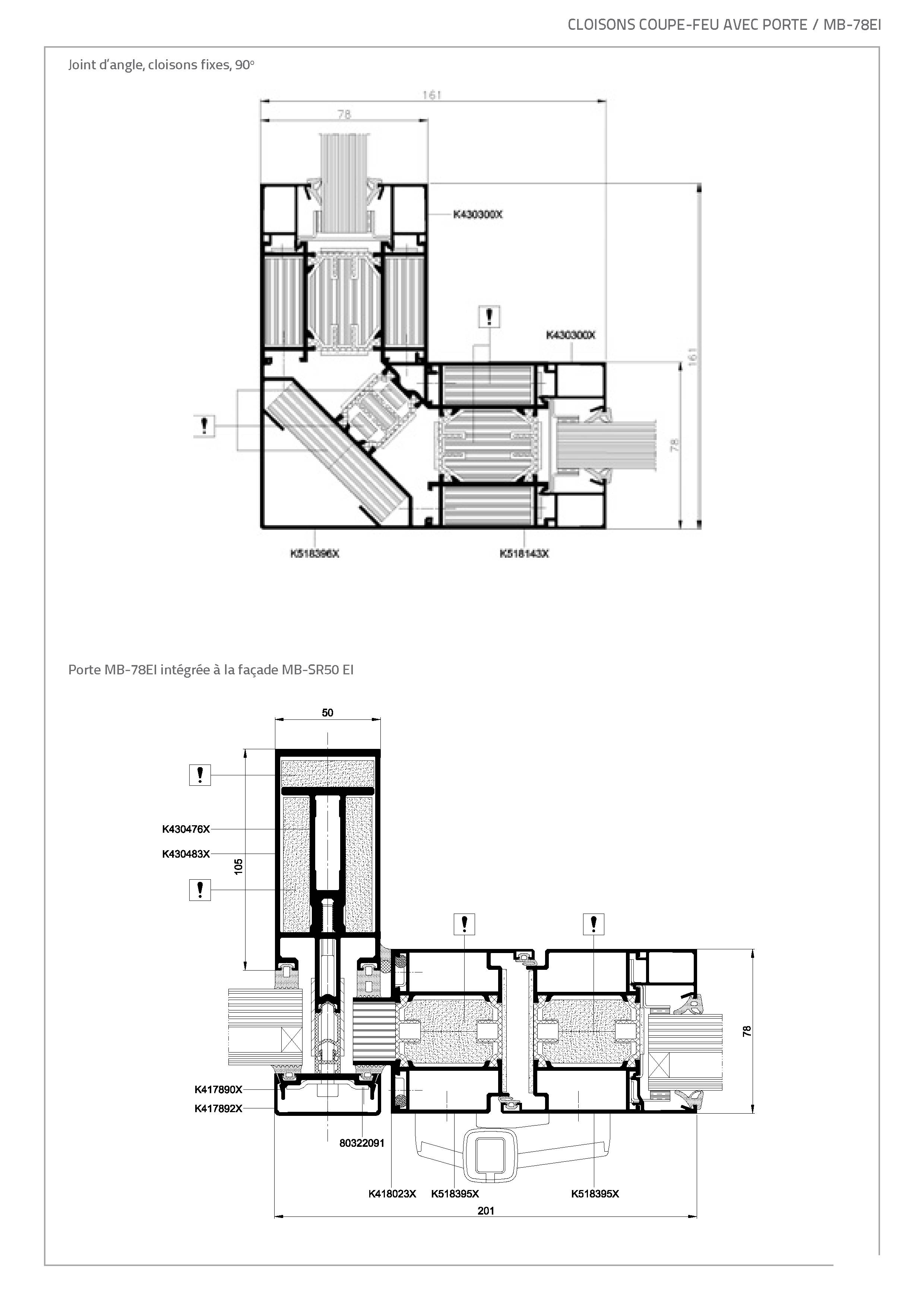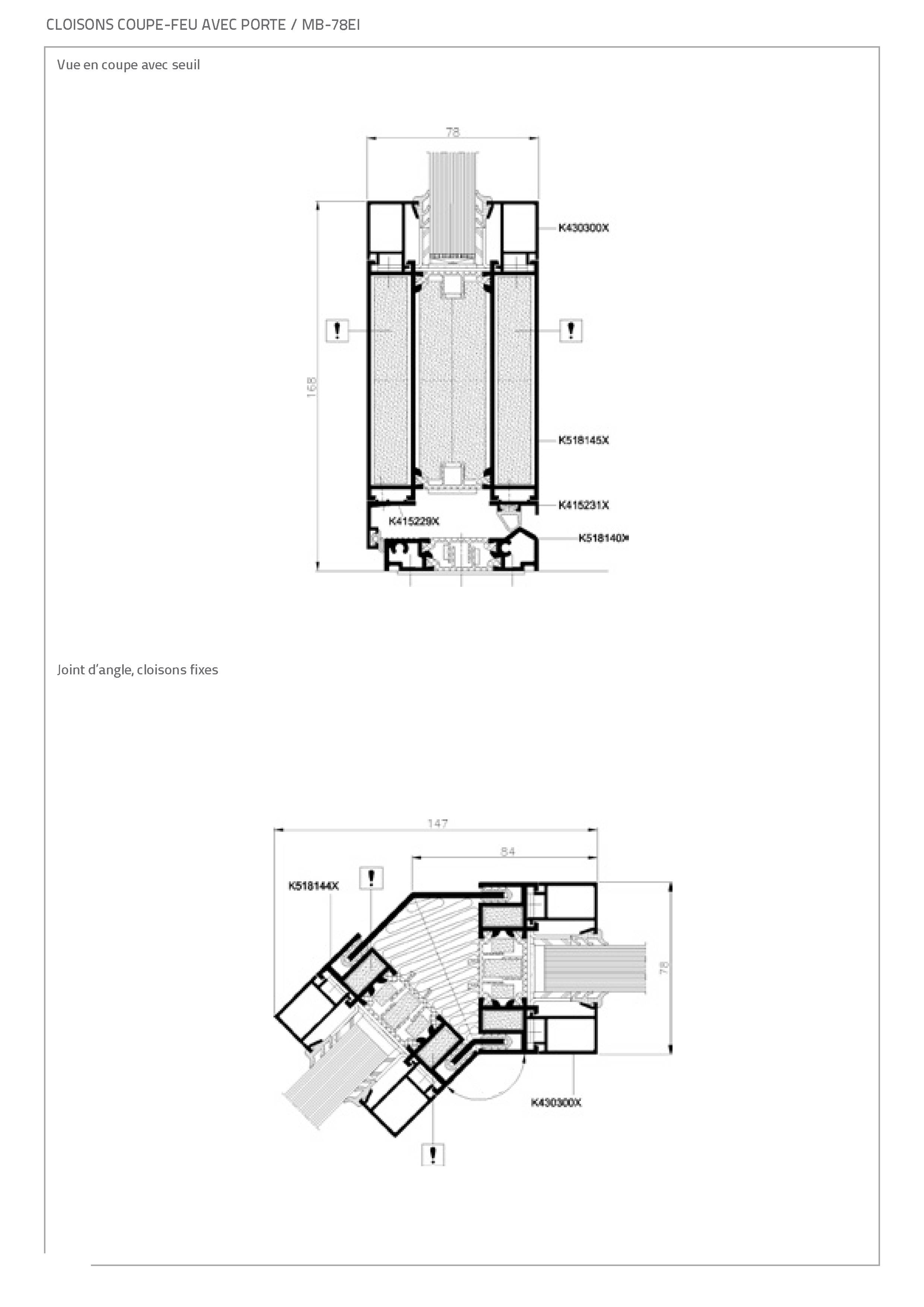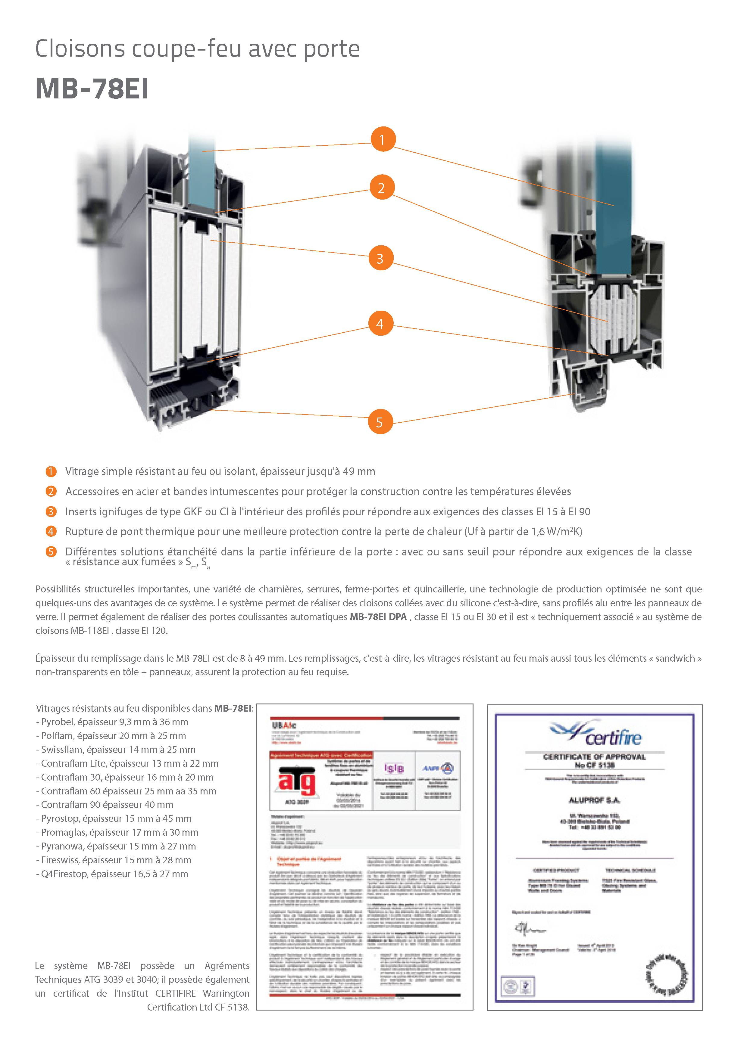 Les constructions système MB-78 EI reposent sur des profilés d'aluminium à isolation thermique. L'épaisseur de la construction est de 78 mm. Les profilés se caractérisent par leur coefficient de déperdition de chaleur (U) très faible car ils sont séparés par un profilé isolant de 34 mm de large. Le système supporte tous les types de vitrages de classe de résistance au feu appropriée (épaisseur de vitrage de 8 à 49 mm). Les cadres peuvent également être garnis de divers remplissages étanches à la fumée. Les essais réalisés par l'Institut des Techniques du Bâtiment à Varsovie ont en outre démontré que les cloisons construites au moyen de ce système se caractérisent également par une très bonne isolation acoustique (jusque 40 dB).